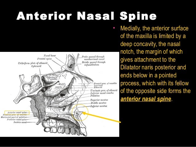 Check spelling or type a new query. It is placed at the level of the nostrils, at the uppermost part of the philtrum and rarely fractures. We did not find results for: The anterior nasal spine is the projection formed by the fusion of the two maxillary bones at the intermaxillary suture. Maybe you would like to learn more about one of these?